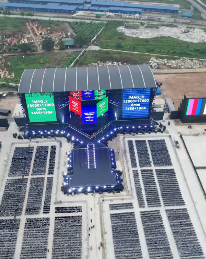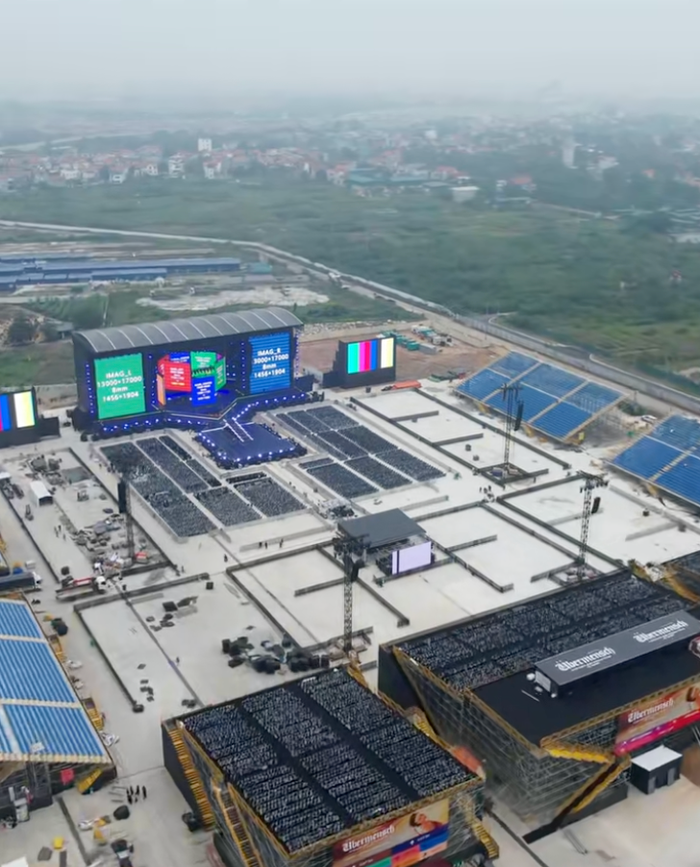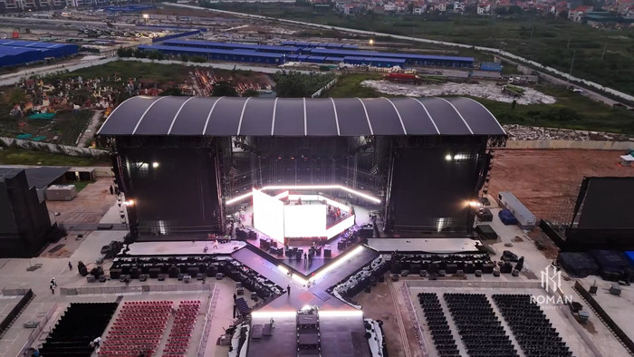 Theo góc nhìn từ trên cao, những hạng mục cuối cùng của sân khấu đã được hoàn thành, sẵn sàng đón hàng chục nghìn khán giả. Ở những hình ảnh vào buổi tối, màn hình led, hệ thống âm thanh, ánh sáng cũng đã được đưa vào vận hành thử nghiệm để đảm bảo các phần trình diễn trong concert được diễn ra trọn vẹn.
