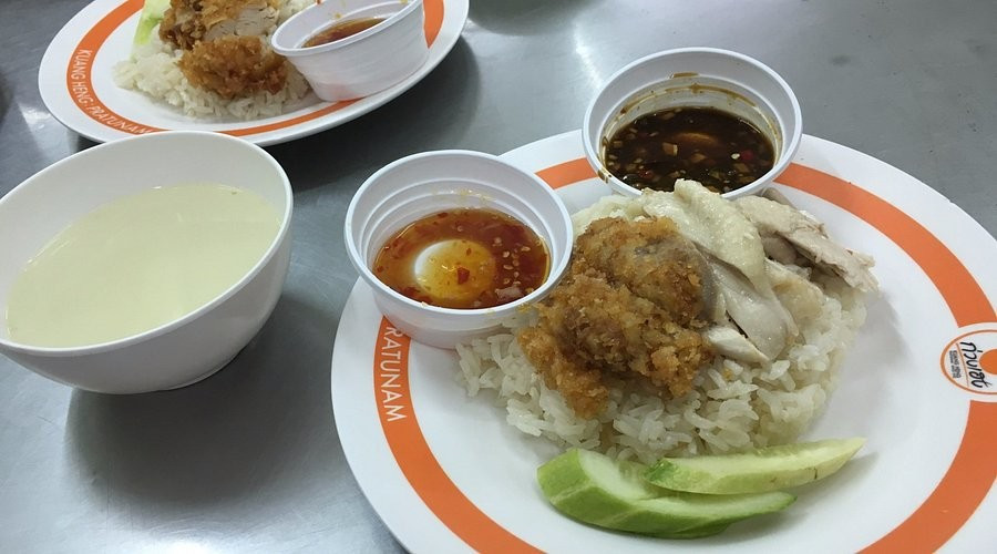 Ngay gần khu mua sắm Platinum Mall, quán Kuang Heng (930 Phetchaburi Rd, Ratchathewi) là lựa chọn lý tưởng cho những ai muốn trải nghiệm vị truyền thống. Cơm dẻo, thịt gà mềm, nước cà ri vàng óng cay nhẹ và thơm mùi thảo mộc – tất cả làm nên sức hút của quán ăn gia truyền tồn tại hơn nửa thế kỷ. Ảnh Tripadvisor