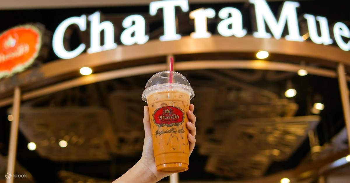 Buổi chiều ở Bangkok là khoảng thời gian lý tưởng để thư giãn cùng một ly trà sữa ChaTraMue, thương hiệu “quốc dân” xuất hiện khắp nơi từ Terminal 21, MBK đến IconSiam. Cốc “Thai Tea” màu cam đặc trưng, vị trà đậm và sữa béo ngậy, là thức uống giải nhiệt hoàn hảo sau buổi dạo phố. Ảnh Klook