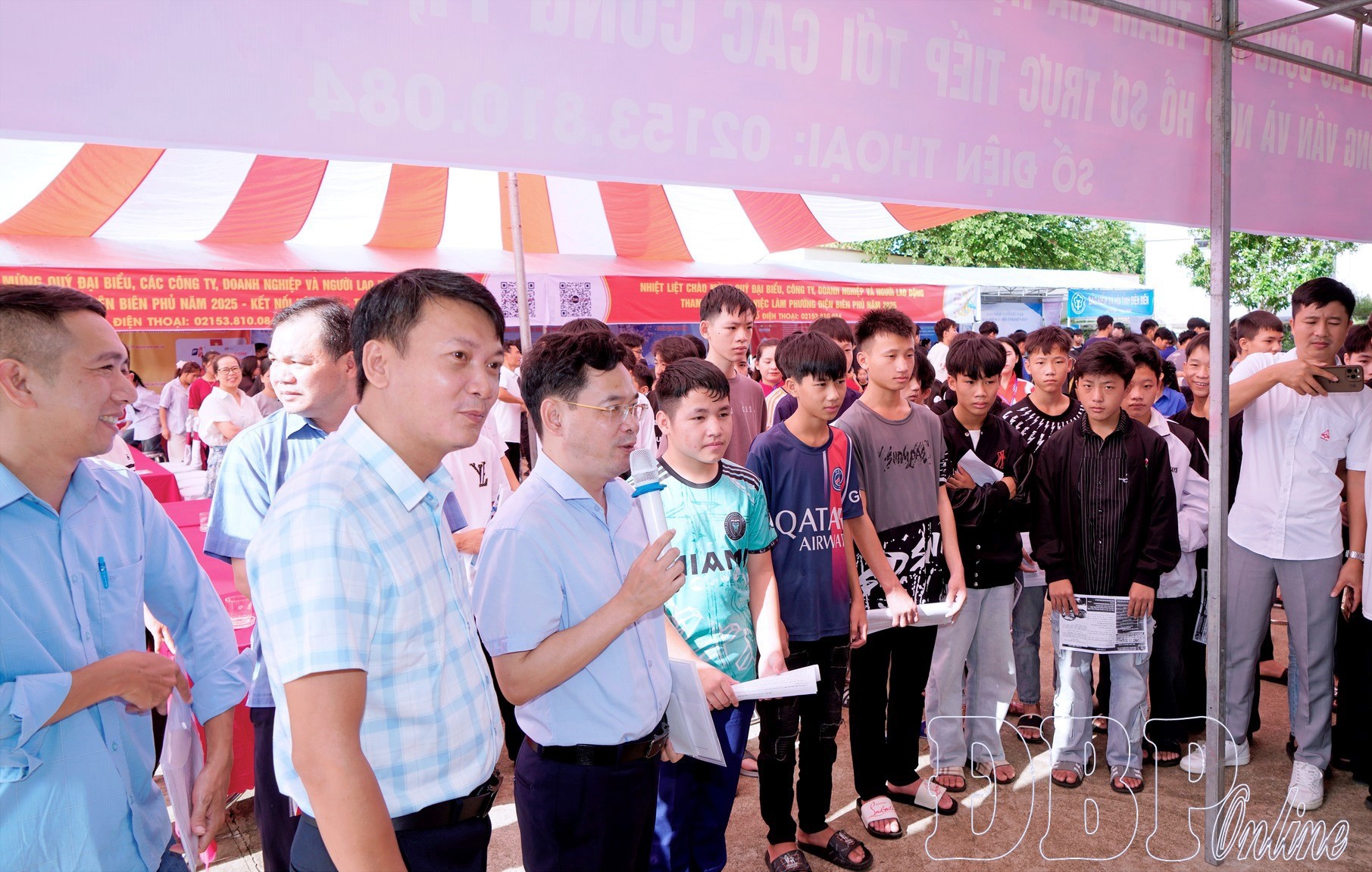Thầy Trần Bá Uẩn (thứ 3 từ trái sang) cùng nhà trường tham gia Ngày hội Việc làm năm 2025 phường Điện Biên Phủ.