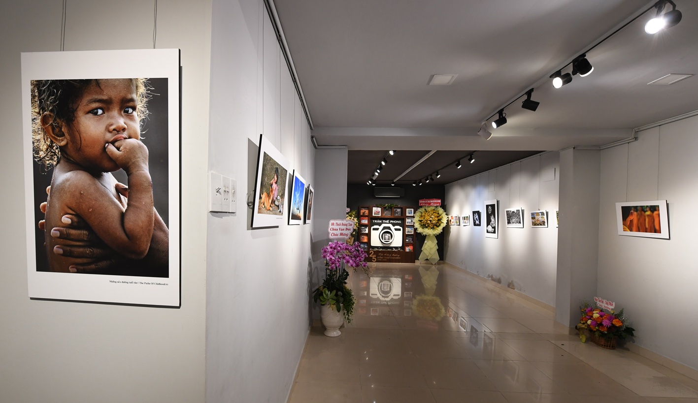 Triển lãm là dấu mốc đặc biệt, đánh dấu 35 năm sống và làm nghề ảnh, 25 năm gắn bó với nhiếp ảnh nghệ thuật và báo chí của Trần Thế Phong, đồng thời là dịp để công chúng yêu nghệ thuật nhìn lại một quãng đường dài lao động nghệ thuật nghiêm túc, bền bỉ và đầy đam mê của anh. Ảnh: Một góc triển lãm của Trần Thế Phong.