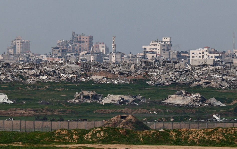 Cảnh tàn phá ở Gaza nhìn từ biên giới Israel-Gaza. Ảnh: Reuters