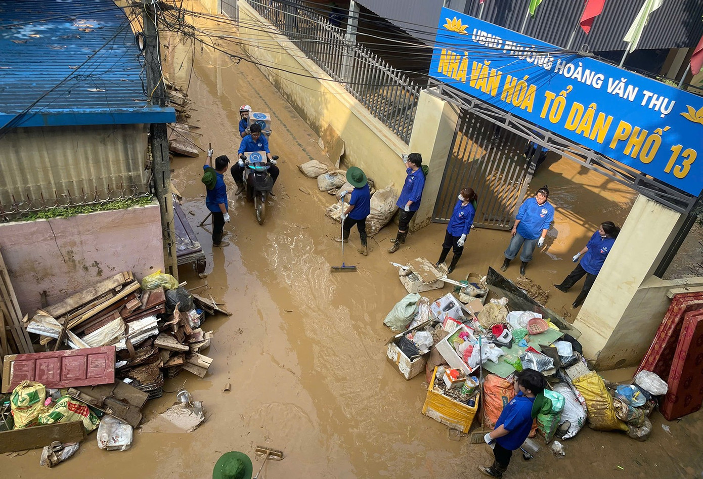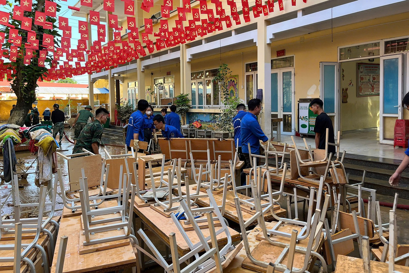 Các sinh viên tình nguyện mang theo dụng cụ lao động, áo xanh và tinh thần hăng hái. Họ chia nhau về từng bản, từng xã, nơi bùn đất vẫn phủ dày trên lối đi, những ngôi trường còn ngập nước và nhiều gia đình đang khắc phục thiệt hại. Nụ cười, lời động viên, bàn tay sẻ chia của tuổi trẻ đã phần nào xua đi nỗi vất vả, lo toan của người dân sau bão.