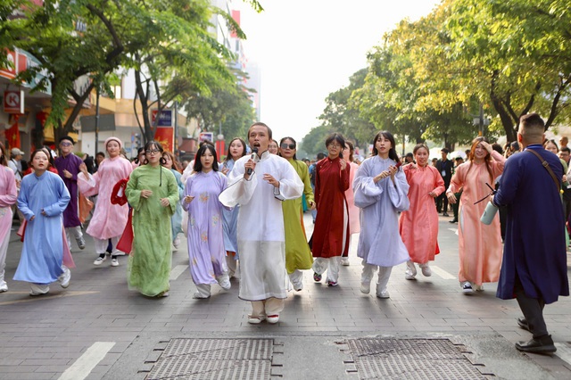 Hoạt động đồng diễn áo dài tạo nên bức tranh đa sắc màu, kết hợp với các tiết mục dân vũ sôi động, thu hút đông đảo người dân và du khách dừng chân chiêm ngưỡng, ghi lại những khoảnh khắc đẹp.
