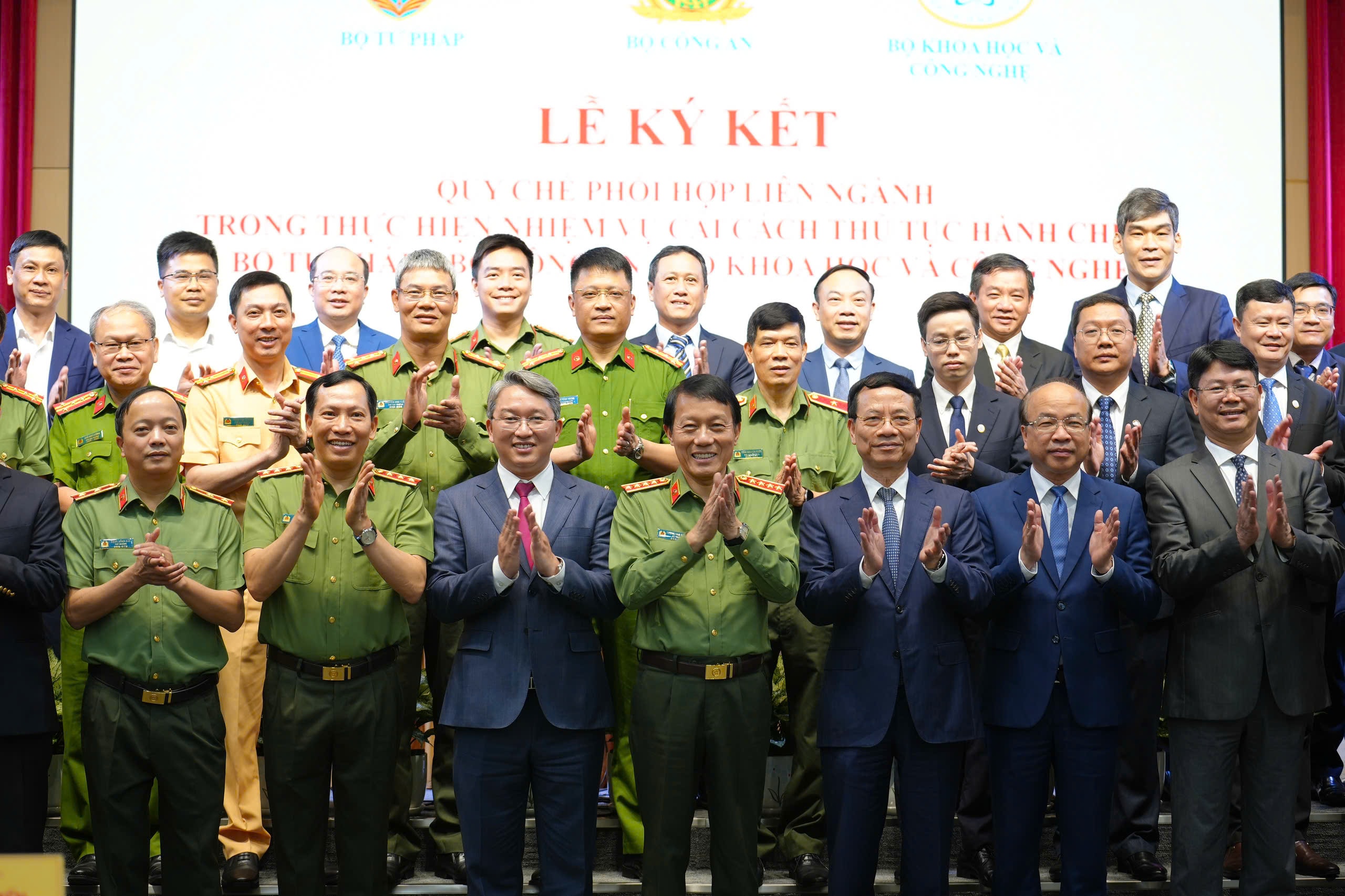 Ủy viên Bộ Chính trị, Bộ trưởng Bộ Công an, Đại tướng Lương Tam Quang; Ủy viên Trung ương Đảng, Bộ trưởng Bộ Tư pháp Nguyễn Hải Ninh; Bộ trưởng Bộ Khoa học và Công nghệ Nguyễn Mạnh Hùng đồng chủ trì Lễ ký kết với sự tham dự của các Thứ trưởng ba Bộ, đại diện các Bộ, ngành, cơ quan, đơn vị, doanh nghiệp đồng hành…
