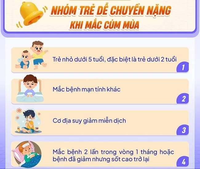 Nhóm trẻ dễ chuyển nặng khi mắc cúm mùa. Nguồn: Bệnh viện Nhi Trung ương
