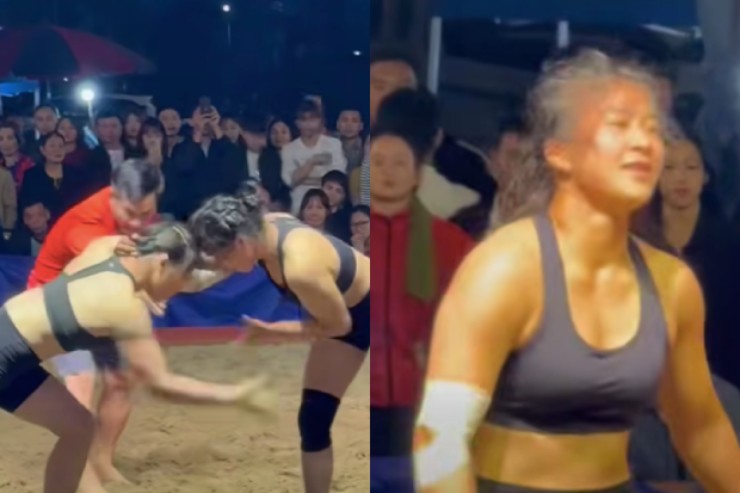 Sự xuất hiện của ba chị em tại giải vật bãi biển quốc gia ở Bắc Ninh nhanh chóng trở thành tâm điểm chú ý. Trong clip do Hiếu “Khổng lồ” chia sẻ, nhiều khán giả lập tức nhận ra ba “cô gái vàng” của vật Việt Nam.