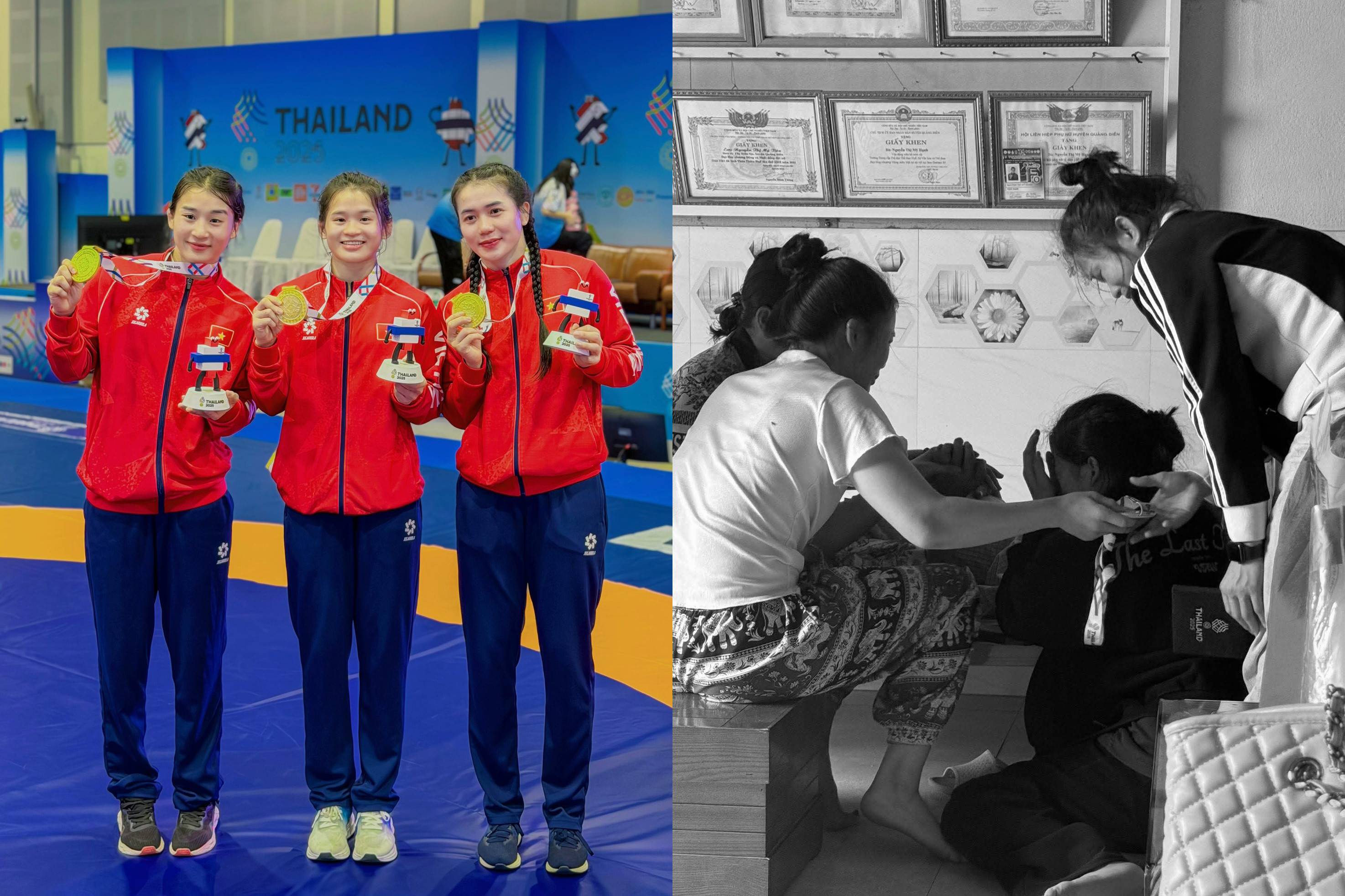 Mỹ Hạnh, Mỹ Trang và Mỹ Linh là 3 chị em ruột giành 3 huy chương vàng môn vật tại SEA Games 33. Ngay khi mang vinh quang trở về, 3 vận động viên nhận tin đau buồn khi cha qua đời tại quê nhà ở làng Thủ Lễ (xã Quảng Điền, TP Huế).
