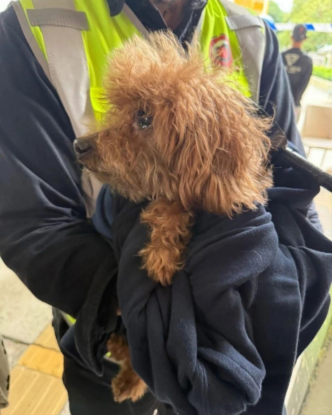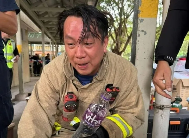 Người lính cứu hỏa cứu 10 thú cưng trong vụ cháy chung cư Hong Kong. Ảnh: Threads@chingwongwc