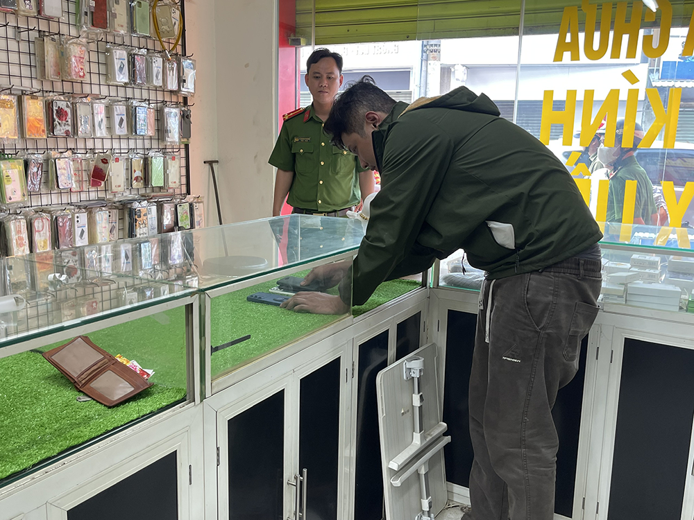 Trước đó, anh V.V.C. (SN 1980) đến Công an phường Thông Tây Hội trình báo vào lúc 12h30 ngày 14/2. Cửa hàng điện thoại trên đường Lê Văn Thọ bị kẻ gian cắt khóa đột nhập. Anh C. xác định mất 51 điện thoại di động các loại.