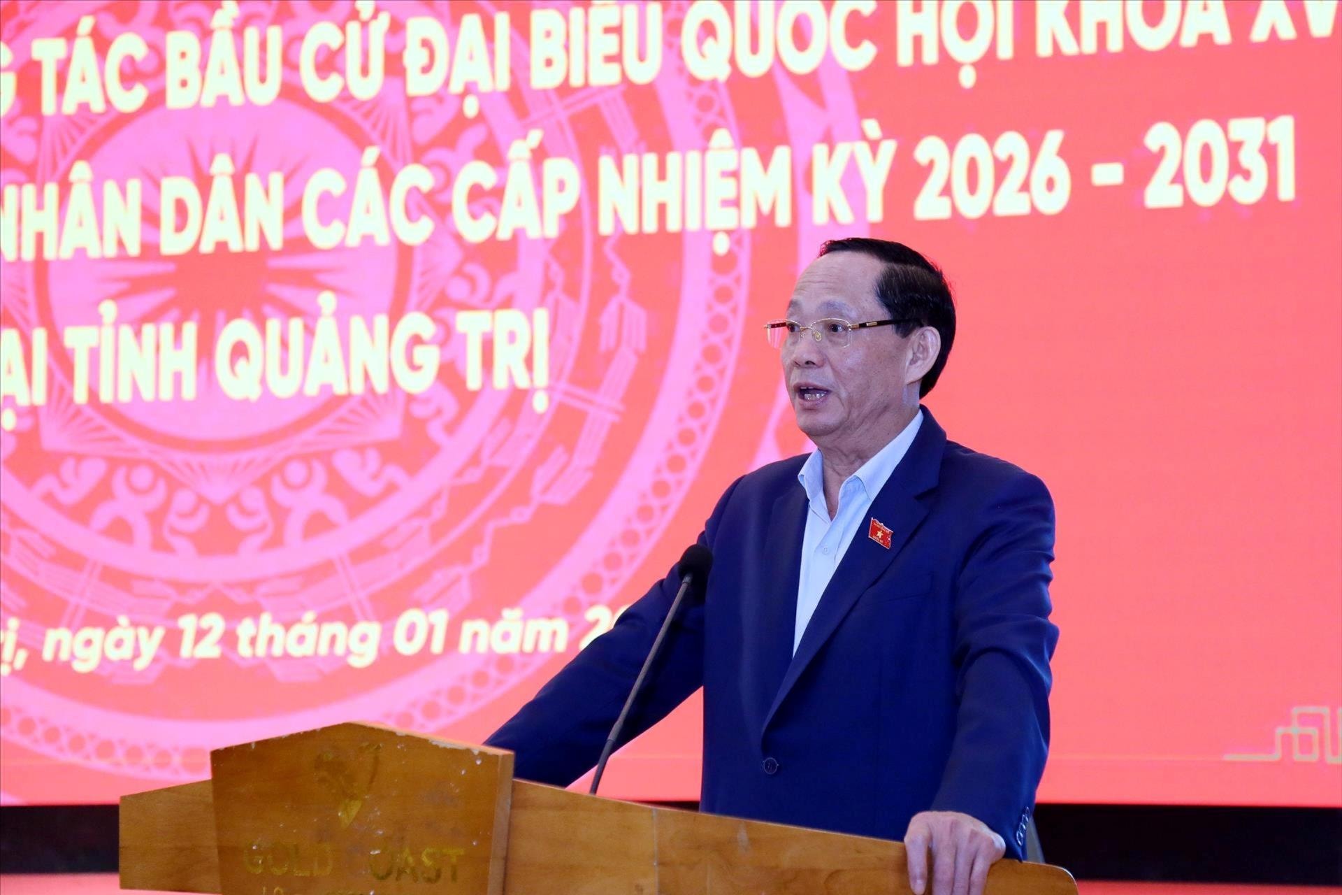Phó Chủ tịch Quốc hội Trần Quang Phương, Ủy viên Hội đồng bầu cử Quốc gia phát biểu tại buổi giám sát công tác chuẩn bị bầu cử đại biểu Quốc hội khóa XVI và đại biểu HĐND các cấp nhiệm kỳ 2026 – 2031 tại tỉnh Quảng Trị