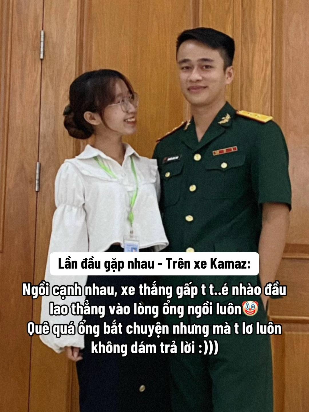 Ngồi cạnh nhau, anh Toàn mở lời làm quen, nhưng vì Ngọc Tâm bị say xe nặng nên cuộc trò chuyện dừng lại sau hai câu hỏi "Em tên gì?" và "Em học trường nào đấy?". Biết cô gái thi vào Đại học Sư phạm, nam chiến sĩ đã rất ấn tượng vì gia đình anh vốn có nhiều người làm trong ngành.