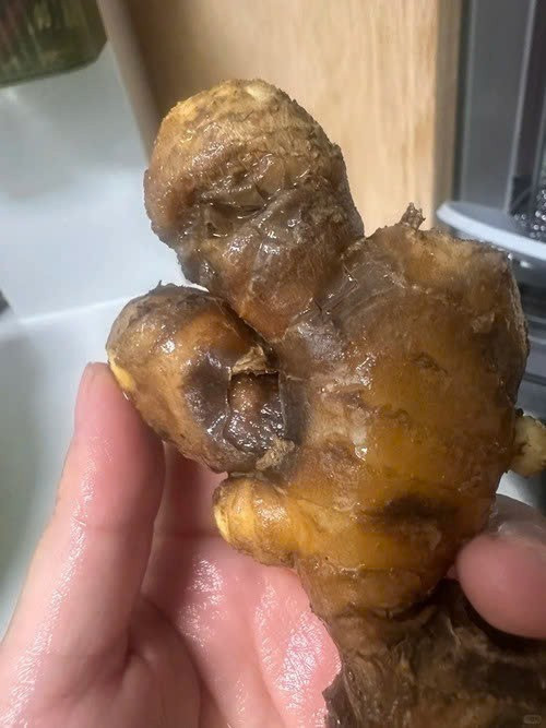 Tuy nhiên, nhiều người vừa mua về vài ngày đã phải bỏ củ gừng vì mềm nhũn, rỉ nước và bốc mùi chua khó chịu. Ảnh minh họa