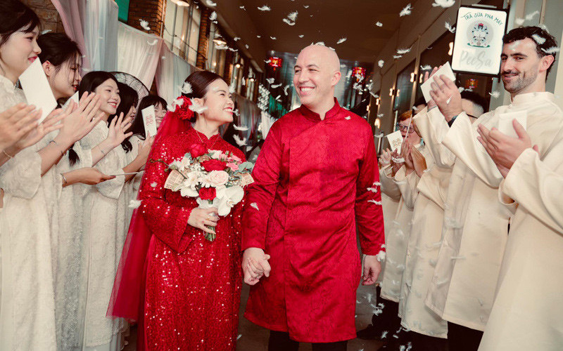 Với vốn tiếng Việt phong phú, chú rể Kieran đọc trôi chảy và đầy tình cảm, khiến quan viên hai họ cười thích thú và vỗ tay cổ vũ. Anh thuận lợi vượt qua thử thách, chính thức “rước nàng về dinh”.
