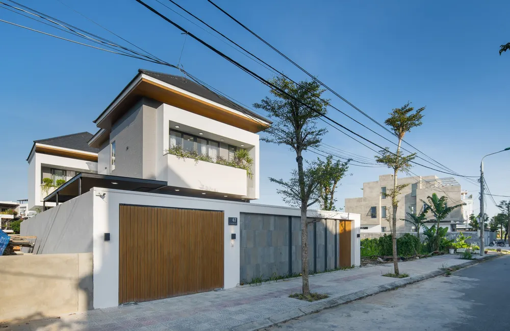 Sắc trắng sứ kết hợp mái ngói màu xám đậm tạo điểm nhấn sang trọng.