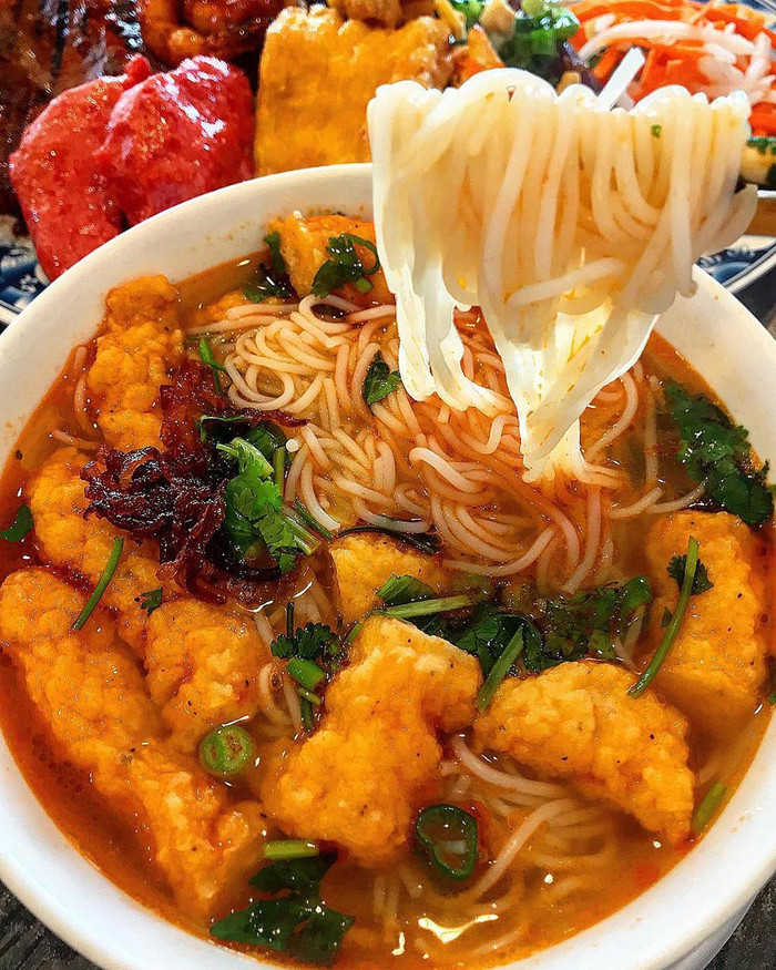 Tô bún nóng hổi, đầy ắp thịt heo quay, huyết, rau sống và nước lèo vàng sánh, vừa dậy mùi vừa hài hòa vị giác. Nhiều du khách thừa nhận, chỉ cần ngửi thấy mùi mắm và sả lan trong gió sáng sớm, họ đã thấy “đói bụng tức thì”.