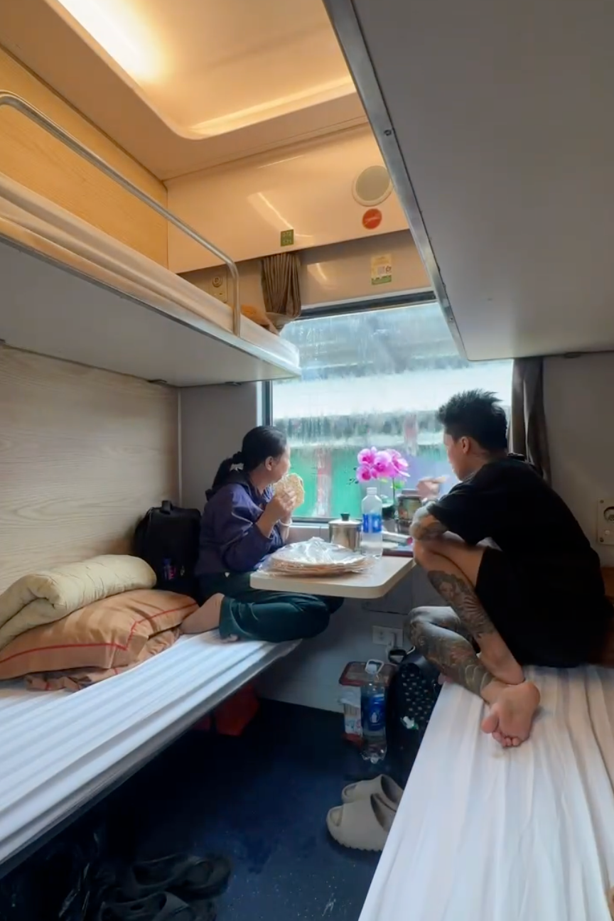 Trong video chia sẻ trải nghiệm, anh quay lại bữa ăn hàng ngày, khu vực vệ sinh sạch sẽ và sự hỗ trợ chu đáo từ nhân viên tàu. Một trong các video hiện thu hút gần 2 triệu lượt xem.