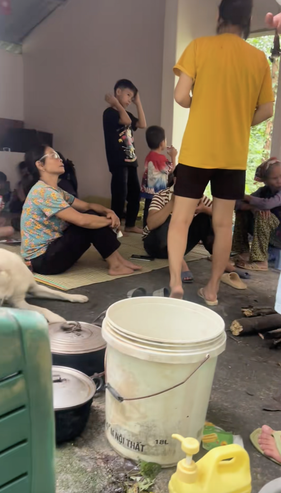 "Vì không đủ chỗ, chúng tôi ưu tiên trẻ nhỏ ngủ, người lớn thì thức canh nước dâng hoặc trải tạm bạt ra nằm. Năm nay 50 tuổi, tôi chưa từng nghĩ đến một ngày phải lâm vào cảnh này", chị kể.