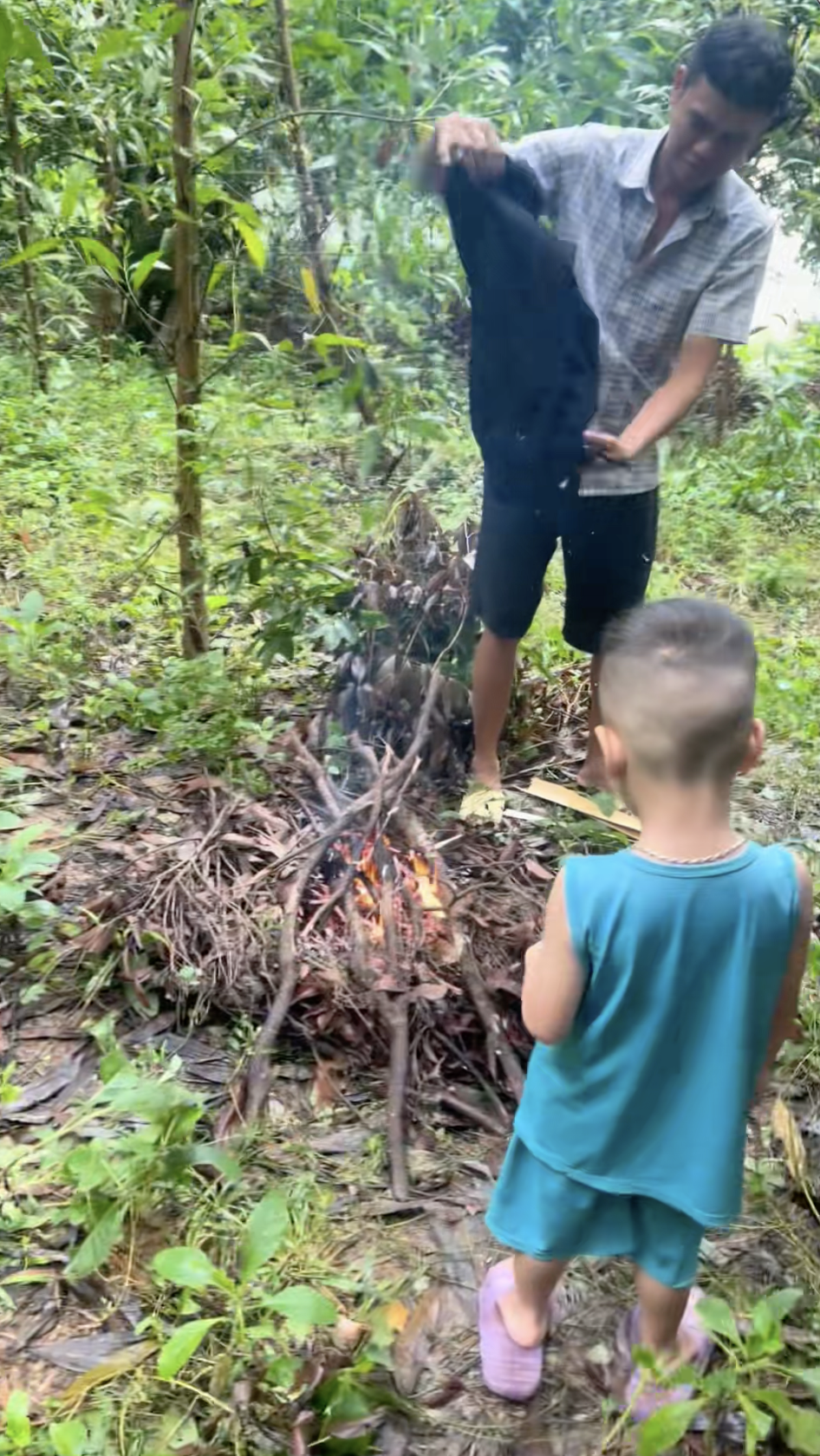 Gia đình chị Lan và 7 hộ khác, tương đương khoảng 40 người, di tản lên khu vực đồi cao sau xóm. Căn miếu nhỏ của xóm, rộng vài mét vuông, cũng là nơi ăn ngủ của mọi người 3 ngày qua.