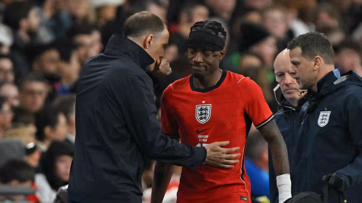 Cả Madueke và Wharton đều bị chấn thương trong trận hòa 1-1 với Uruguay hôm thứ Sáu, trước đó Stones cũng gặp vấn đề trong buổi tập. Trong khi đó, Rice và Saka sẽ trở lại Arsenal để "kiểm tra y tế". Thủ môn Aaron Ramsdale, trung vệ Fikayo Tomori và tiền đạo Dominic Calvert-Lewin đã được cho về nhà, khi HLV Thomas Tuchel chào đón một số cầu thủ thường xuyên ra sân sau trận giao hữu với Uruguay.