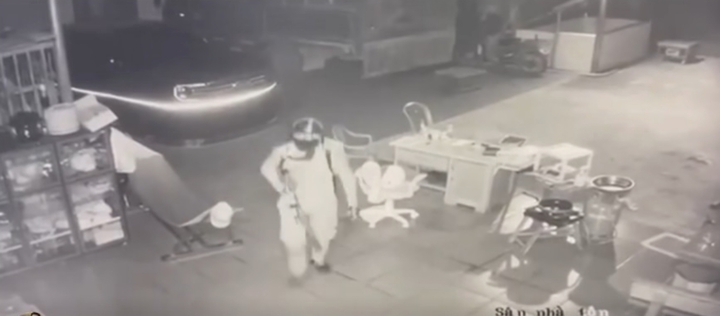 Cùng ngày, xuất hiện đoạn video dài hơn 30 giây ghi lại cảnh đối tượng bịt mặt, cầm vật giống như súng đi lại trong sân ngôi nhà phát hiện 3 người tử vong.