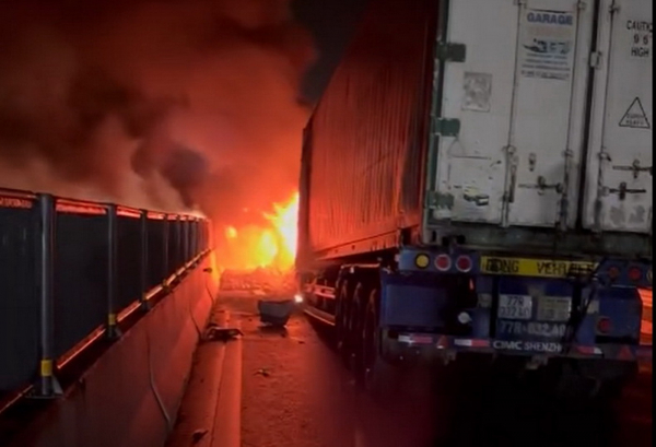 Tuy nhiên lúc này hỏa hoạn đã bùng phát mạnh, ngọn lửa phủ kín cả 3 xe tải. Lực lượng Cảnh sát phải nỗ lực phun nước gần 1 giờ mới dập tắt đám cháy. Vụ cháy không gây thương vong về người vì tài xế và phụ xe trên 3 chiếc xe tải đã kịp thoát ra ngoài. Nhưng các ô tô tải BKS 50H-408.23 và 89C-203.05 bị thiêu rụi hoàn toàn chỉ còn lại khung sắt. Phương tiện thứ ba là xe đầu kéo BKS 77C-172.89 bị cháy rụi đầu ca bin, còn lại phần rơ moóc.