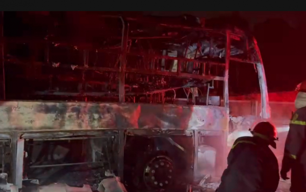 Hiện trường cháy 3 xe ô tô liên hoàn trên cao tốc Vân Phong - Nha Trang rạng sáng nay (6/12).