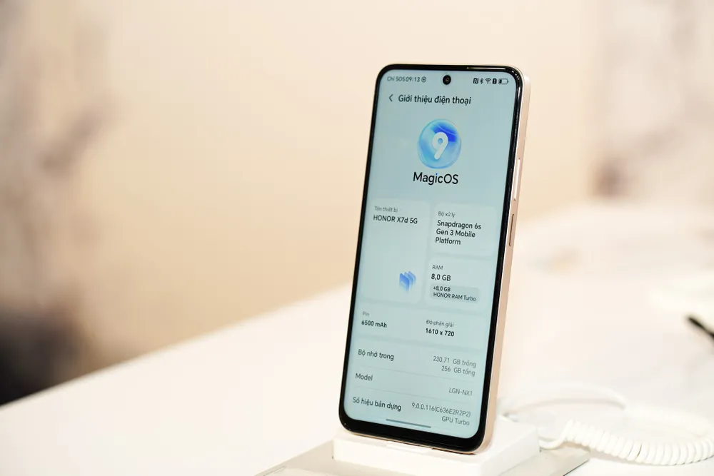 Đặc biệt, máy còn được tích hợp phím AI vật lý, người dùng chỉ cần nhấn giữ để kích hoạt nhanh các công cụ AI như dịch văn bản, khoanh tròn tìm kiếm hoặc chỉnh sửa ảnh bằng trí tuệ nhân tạo. Thiết bị chạy MagicOS 9.0 dựa trên Android, tối ưu hiệu năng và quản lý đa nhiệm mượt mà.