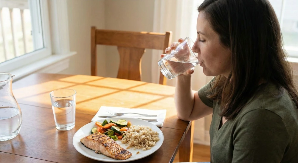 Uống đủ nước trong và sau bữa ăn giúp đường huyết ổn định hơn