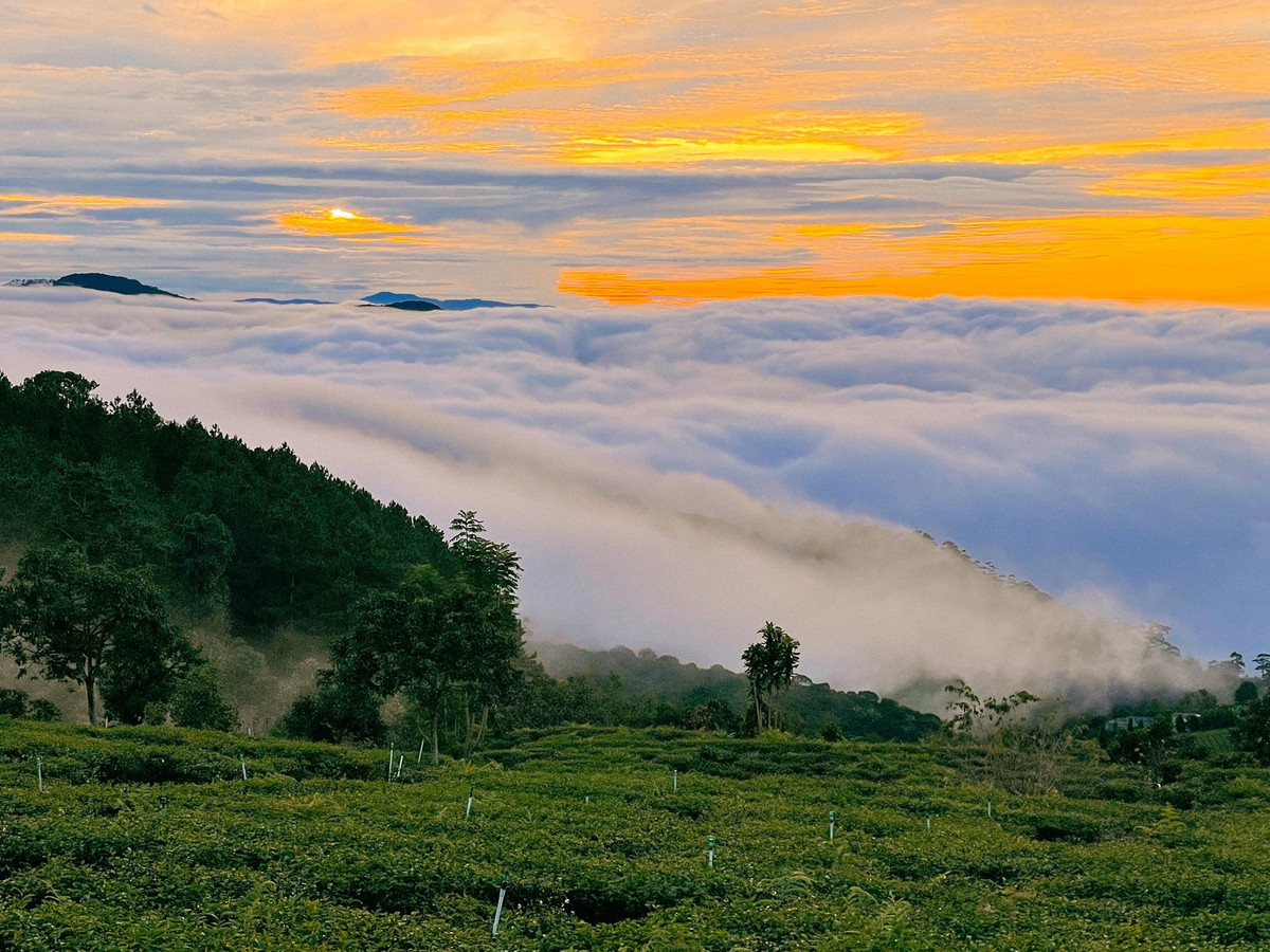 Khi mặt trời nhô lên, ánh sáng dần nhuộm biển mây chuyển từ trắng sang hồng, cam và vàng rực rỡ. Từ đỉnh đồi, du khách có thể phóng tầm mắt toàn cảnh, ghi lại những khoảnh khắc màu sắc kỳ diệu, tạo nên những bức ảnh vừa sống động vừa nghệ thuật.