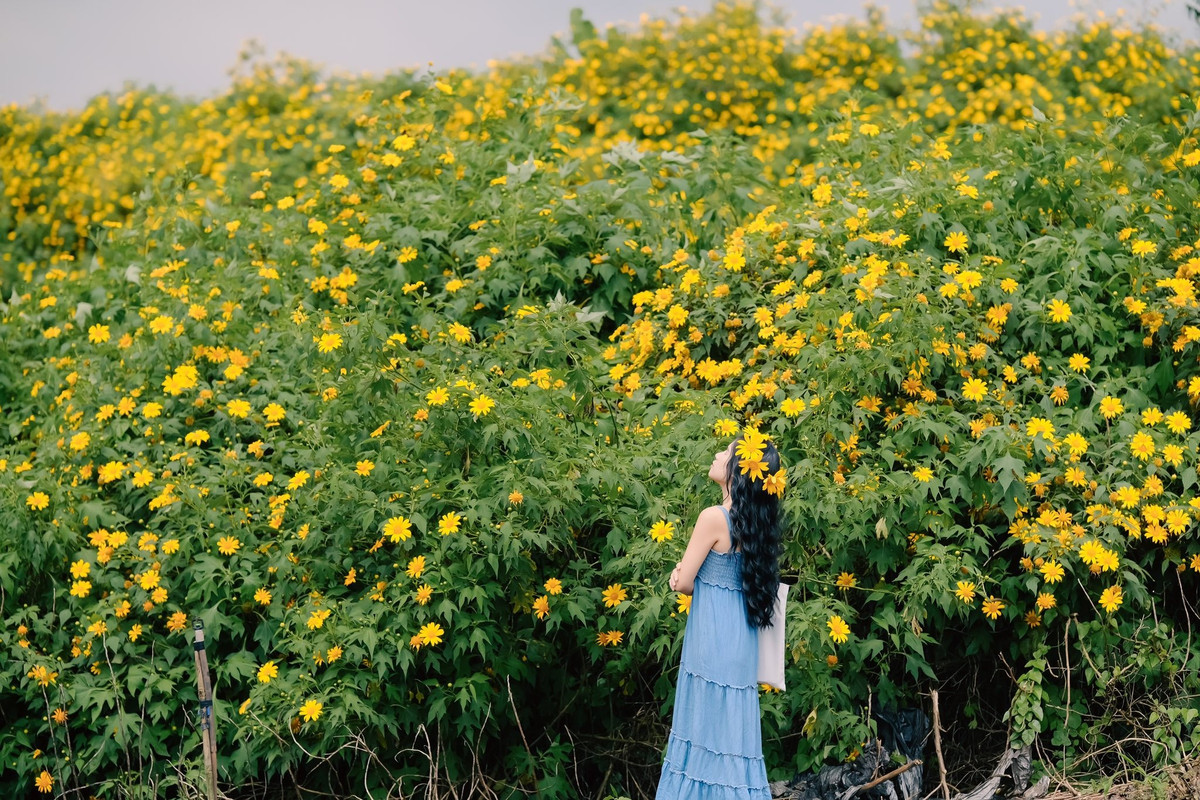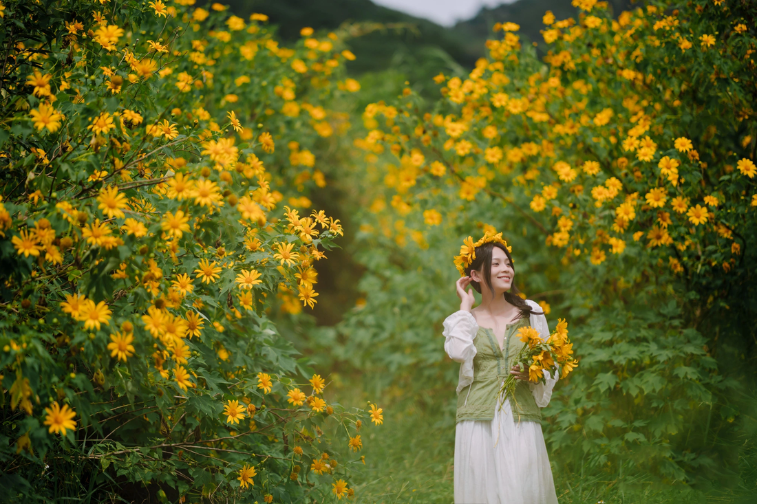 Thời điểm lý tưởng để chụp hoa dã quỳ là vào buổi sáng từ 7h đến 9h, khi ánh sáng dịu, trời nhiều sương, tạo cảm giác mềm mại và lãng mạn cho khung hình. Buổi chiều muộn, từ 15h30 đến 17h, ánh nắng vàng cam làm hoa rực rỡ hơn, rất thích hợp để chụp ngược sáng hoặc ảnh chân dung với tông màu ấm. Ảnh Sam Sam