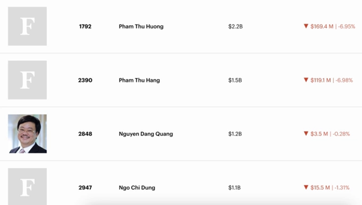 3 tỷ phú USD mới của Việt Nam theo xếp hạng của Forbes. (Ảnh chụp màn hình)
