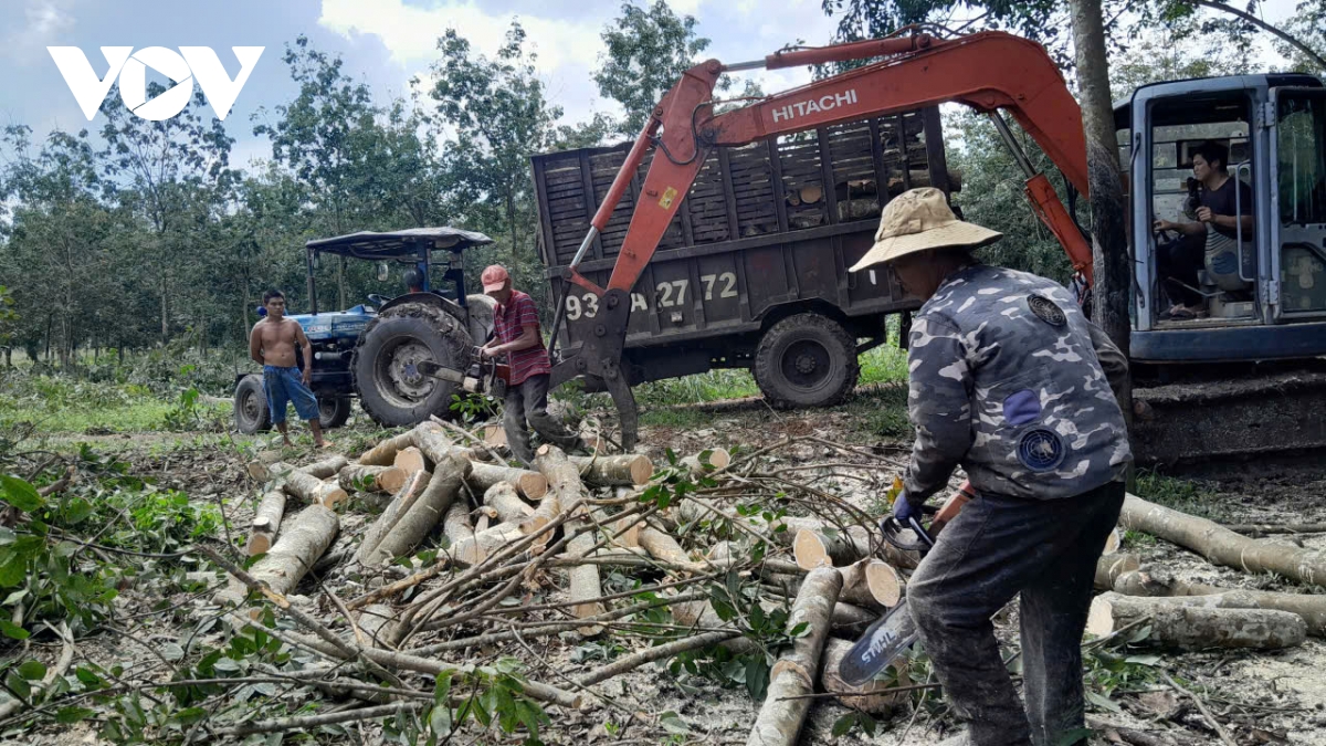 Người dân phường Bình Phước cắt cây bàn giao đất cho dự án