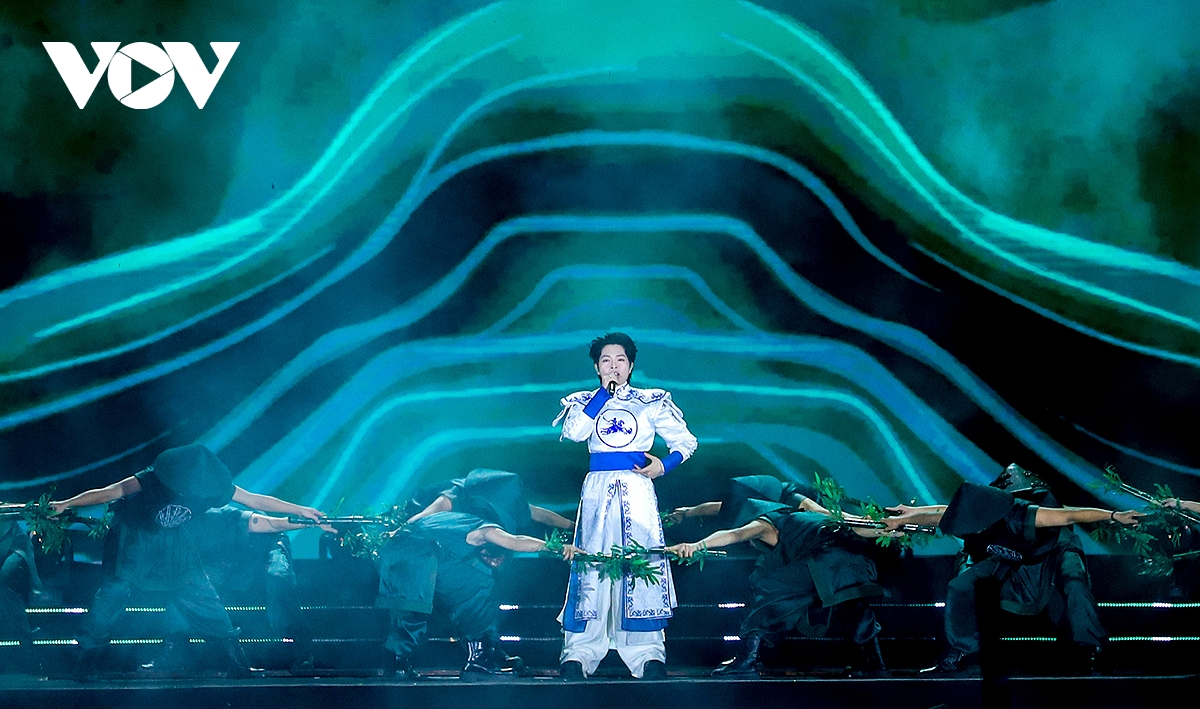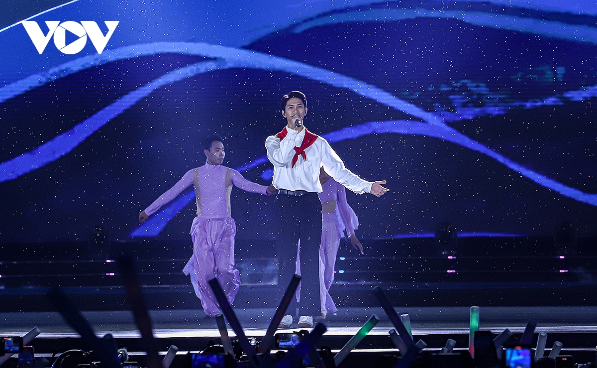 “Phù Đổng Thiên Vương” – ca khúc giúp Đức Phúc chiến thắng tại cuộc thi Intervision 2025 ở Nga được dàn dựng công phu trên sân khấu Concert Hạ Long. Câu chuyện về Thánh Gióng và những câu thơ “Tre Việt Nam” tôn vinh sức mạnh tuổi trẻ, văn hóa dân tộc khiến khán giả xúc động.