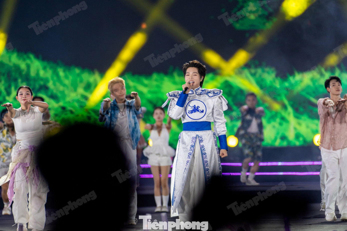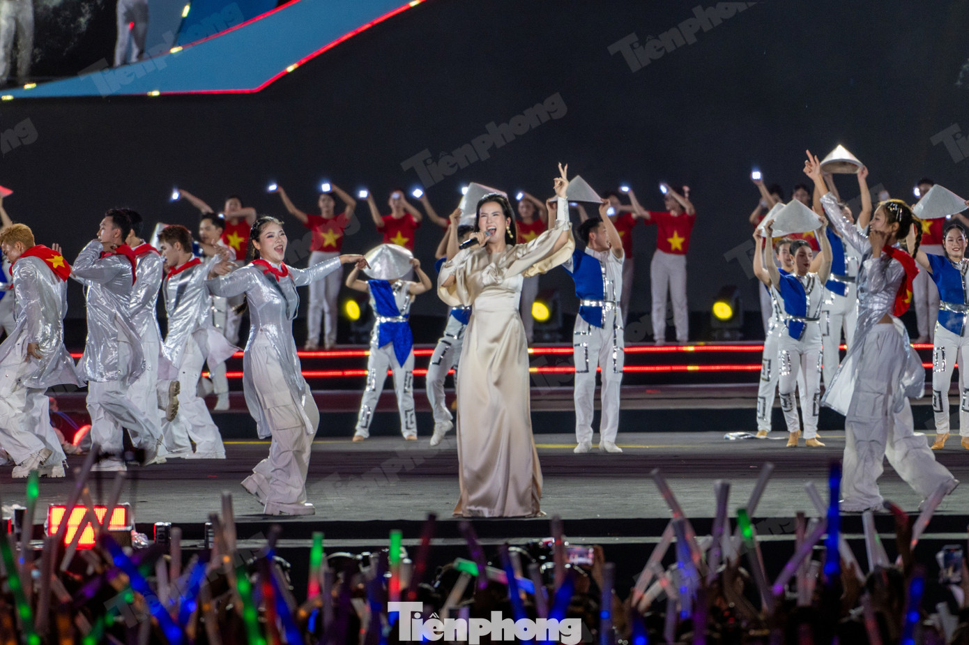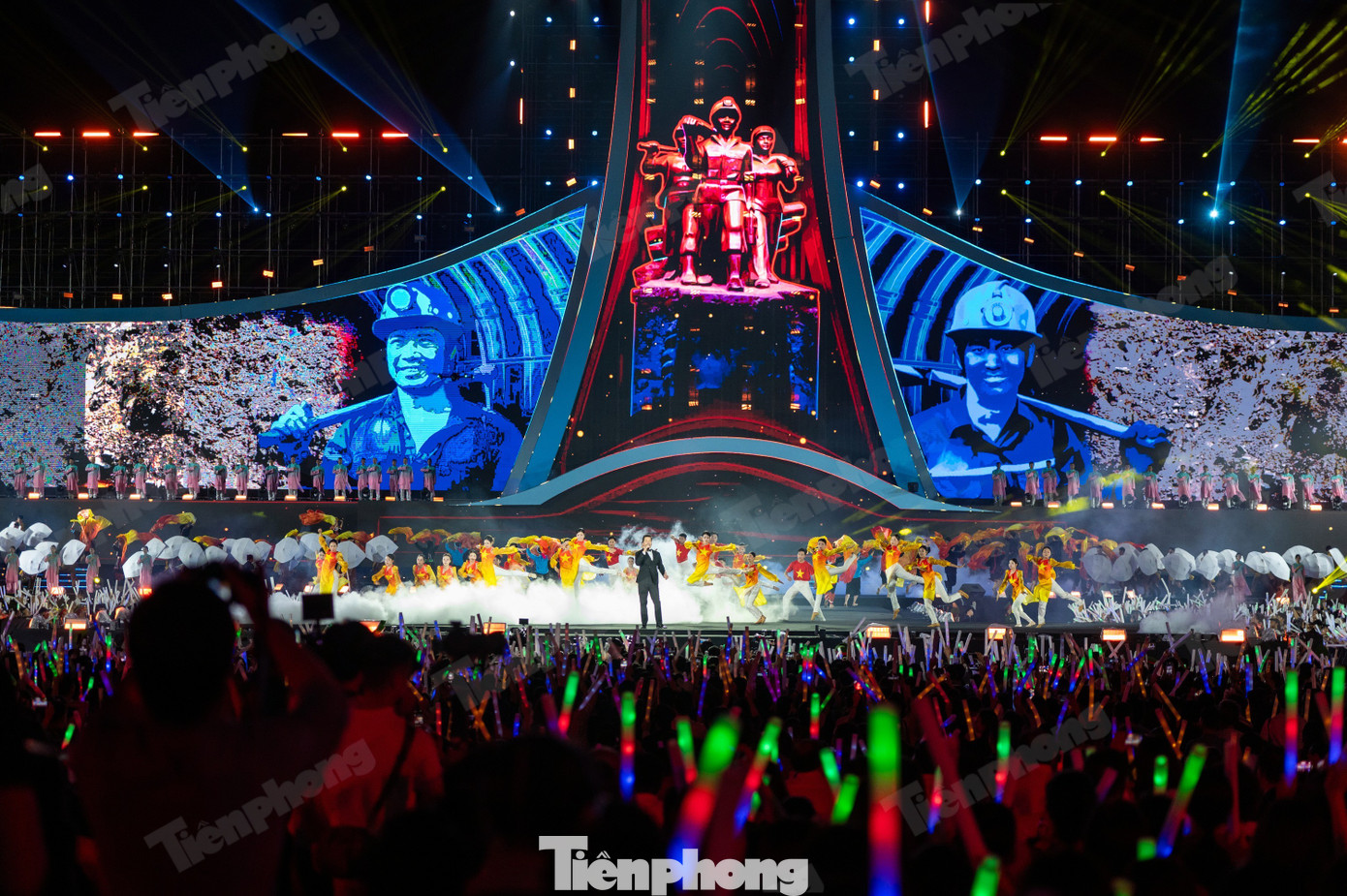 Tiếp theo là các màn biểu diễn hoành tráng của hơn 1.000 diễn viên cùng các ca sĩ Đăng Dương, Lâm Bảo Ngọc, Tùng Dương, Đông Hùng… với các tiết mục mang đậm hào khí của Quảng Ninh và dân tộc như Đất mỏ anh hùng, Việt Nam, Cờ Đảng bay trên núi Bài Thơ, Tôi là người thợ lò, Lên Đàng…