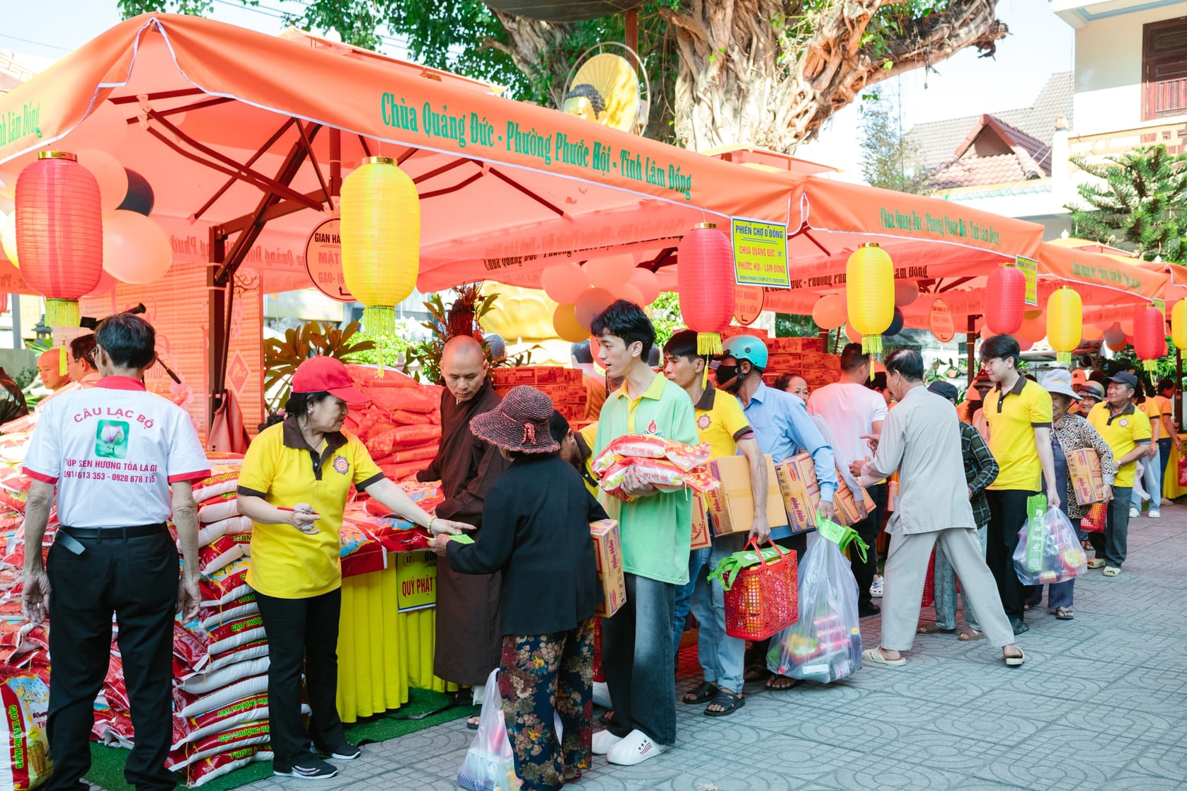 Quang cảnh phiên chợ 0 đồng tại chùa Quảng Đức, phường Phước Hội, tỉnh Lâm Đồng