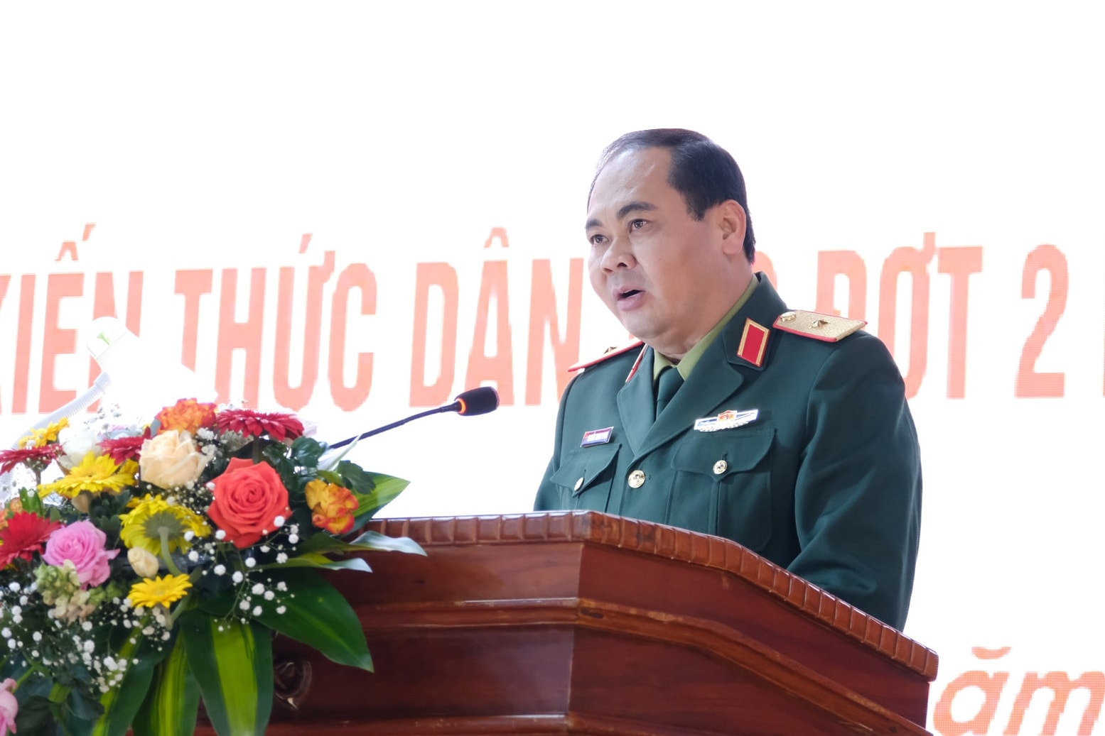 Thiếu tướng Nguyễn Thanh Phong, Phó Chính ủy Học viện Lục quân phát biểu giao nhiệm vụ cho các cán bộ, giảng viên tại lễ bế mạc đợt bồi dưỡng kiến thức dân tộc đợt 2