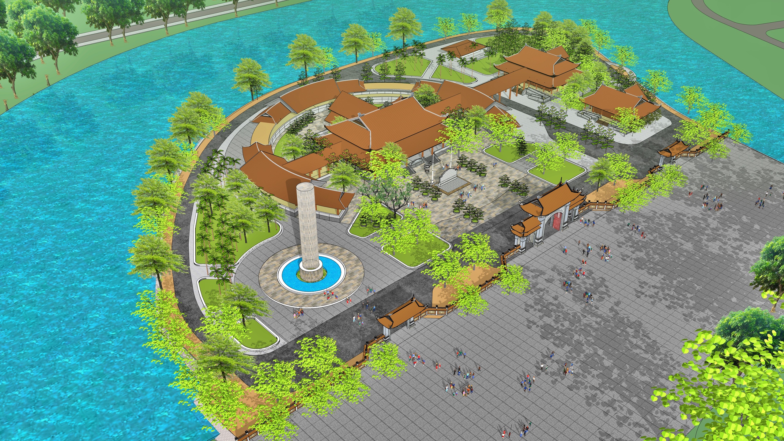 Phối cảnh Đền tưởng niệm Anh hùng liệt sĩ và người có công tỉnh Cà Mau.