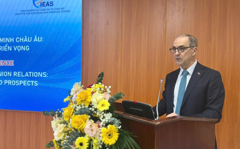 Phát biểu tại hội thảo, ông Rafael de Bustamante, Phó Trưởng Phái đoàn Liên minh châu Âu tại Việt Nam, nêu rõ: Trong 35 năm qua, Việt Nam đã trở thành một trong những đối tác năng động và đáng tin cậy nhất của EU tại châu Á. Ngày nay, Việt Nam giữ vai trò là một đối tác hàng đầu trong ASEAN và là quốc gia then chốt trong Chiến lược Ấn Độ Dương-Thái Bình Dương của EU. Chúng ta tự hào rằng giữa EU và Việt Nam đã thiết lập hệ thống các văn kiện hợp tác song phương phong phú nhất so các quốc gia Đông Nam Á khác, từ chính trị, thương mại-đầu tư đến quốc phòng và an ninh. Điều này thể hiện sự trưởng thành và chiều sâu trong tầm nhìn chiến lược chung của hai bên.