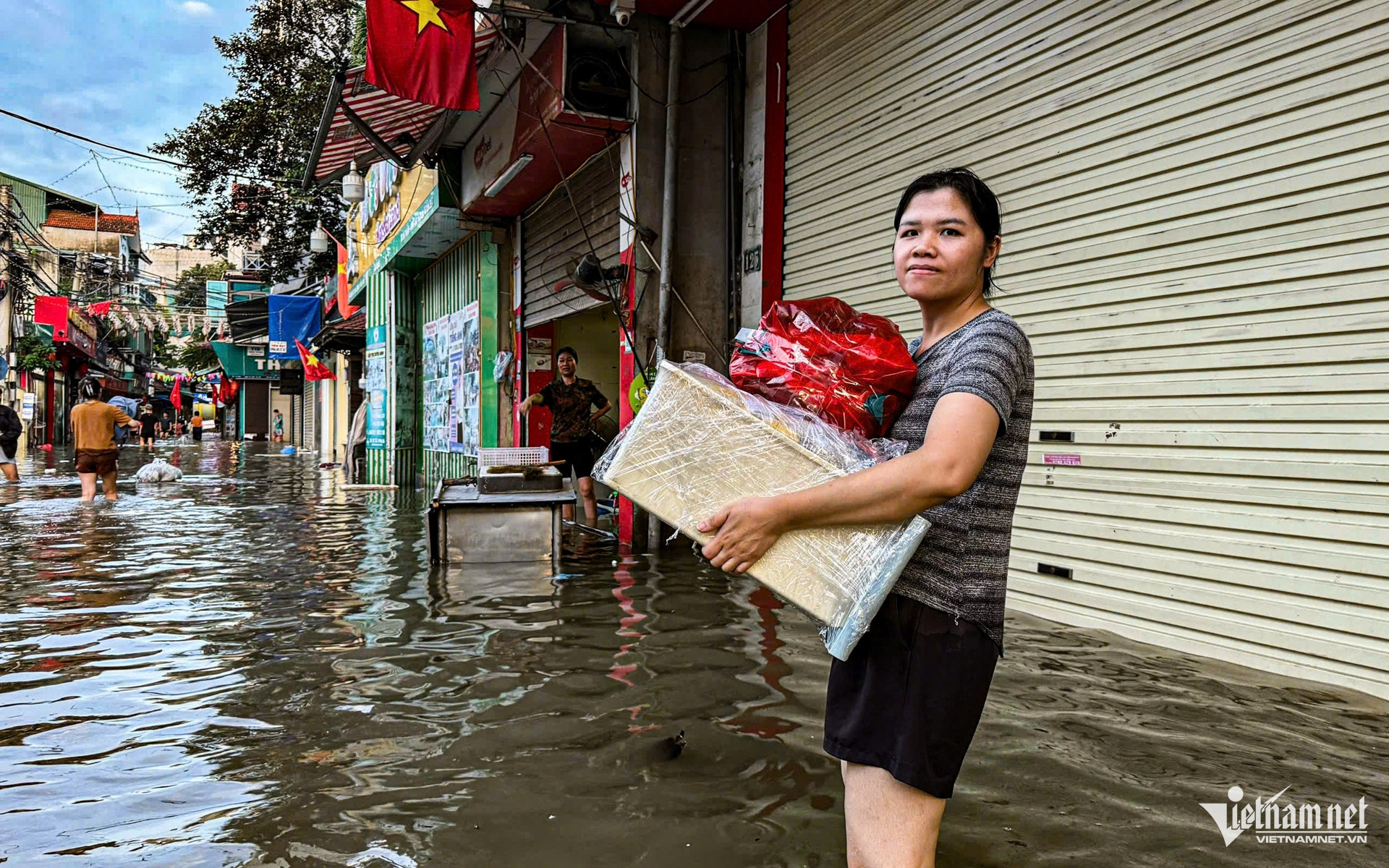 Từ chiều ngày 30/9 đến nay, khu vực tổ dân phố số 2 Phú Đô (gần chợ Phú Đô), phường Từ Liêm, Hà Nội vẫn ngập sâu sau mưa lớn. Nước dâng cao nhưng thoát rất chậm, kéo theo rác thải trôi nổi, mùi hôi thối khó chịu vào nhà, khiến cuộc sống của người dân đảo lộn.