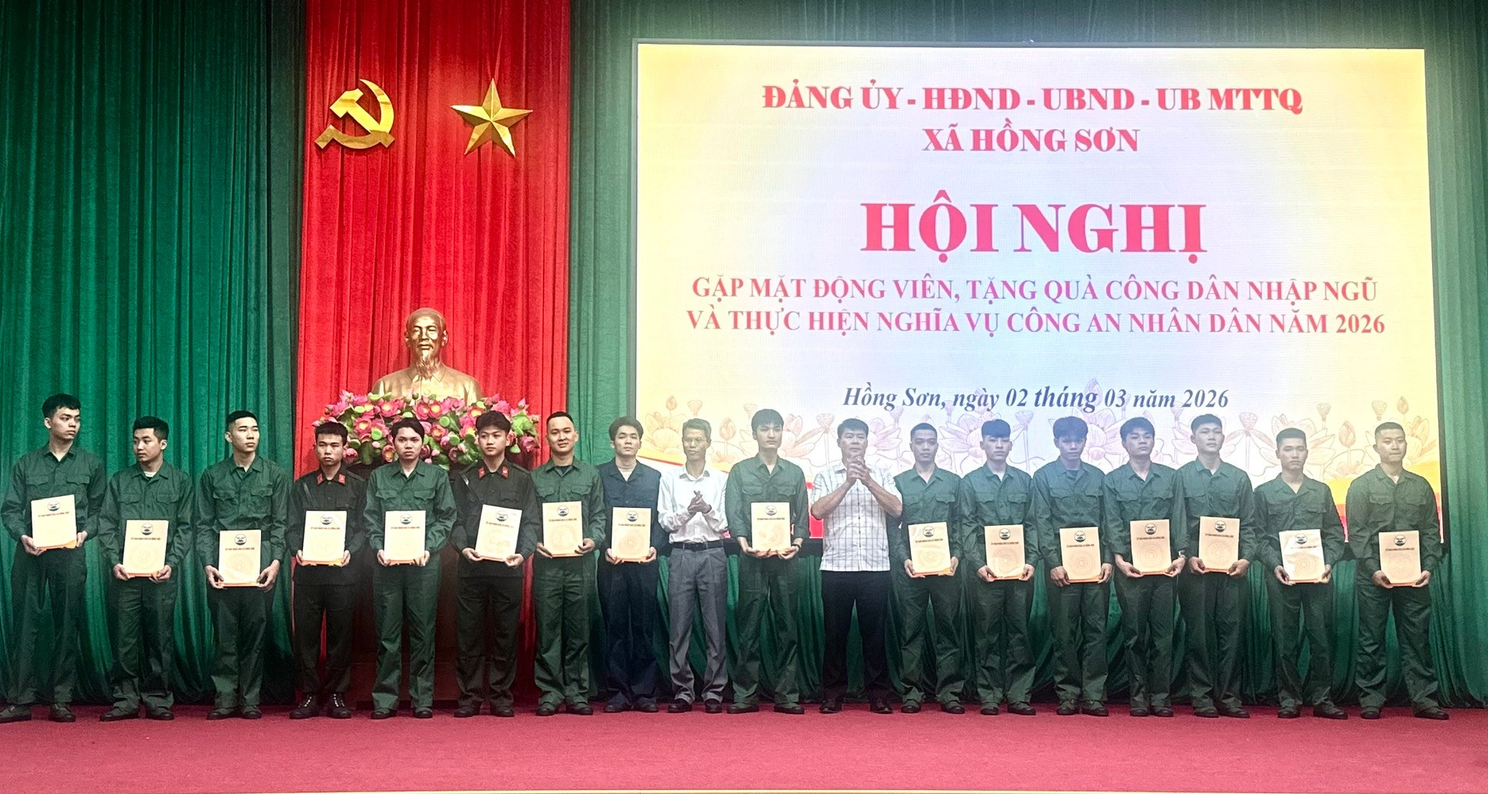 Với sự chuẩn bị chu đáo, đồng bộ, xã Hồng Sơn sẵn sàng cho Ngày hội tòng quân năm 2026, quyết tâm hoàn thành tốt nhiệm vụ tuyển quân, góp phần xây dựng nền quốc phòng toàn dân, thế trận an ninh nhân dân vững chắc từ cơ sở.