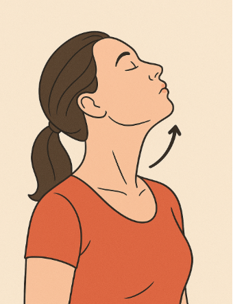 - Ngồi thẳng lưng, ngửa đầu ra sau để cằm hướng lên trần nhà.