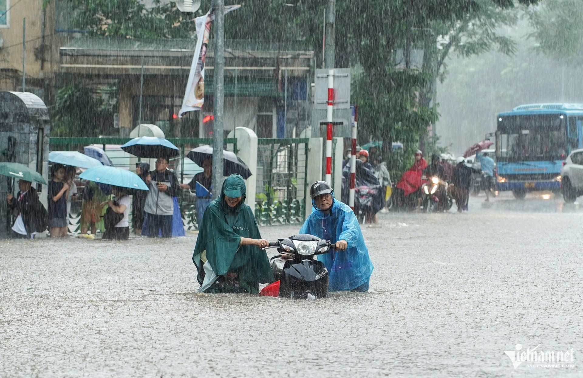 Hoàn lưu bão số 10 gây ra đợt mưa rất to ở Hà Nội ngày 30/9, ngập úng ở nhiều tuyến đường. Ảnh: Minh Quân