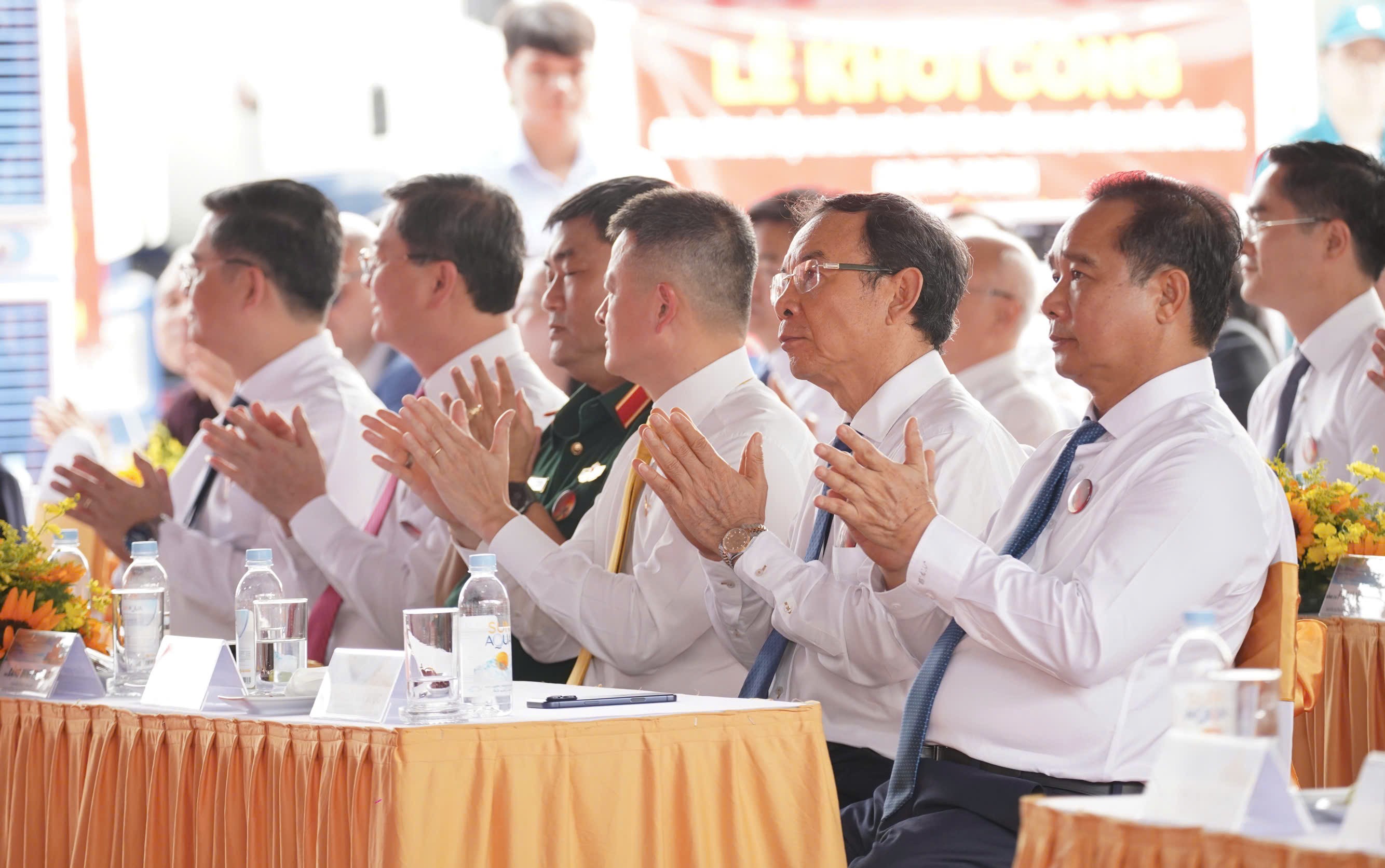 Chủ tịch UBND TP.HCM Nguyễn Văn Được (ngoài cùng bên phải) và các đại biểu tham dự lễ khởi công. Ảnh: ĐT