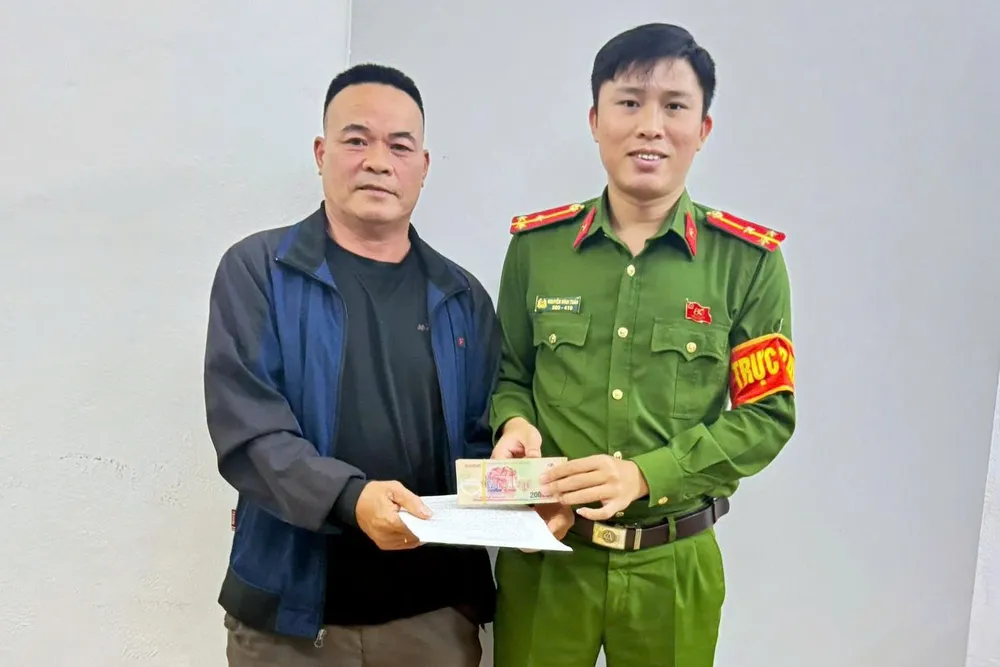 Ngày 24-10, Công an xã Hoằng Tiến đã tổ chức trao trả lại toàn bộ số tiền cho anh Bằng trước sự chứng kiến của đại diện nhà trường và chính quyền địa phương.