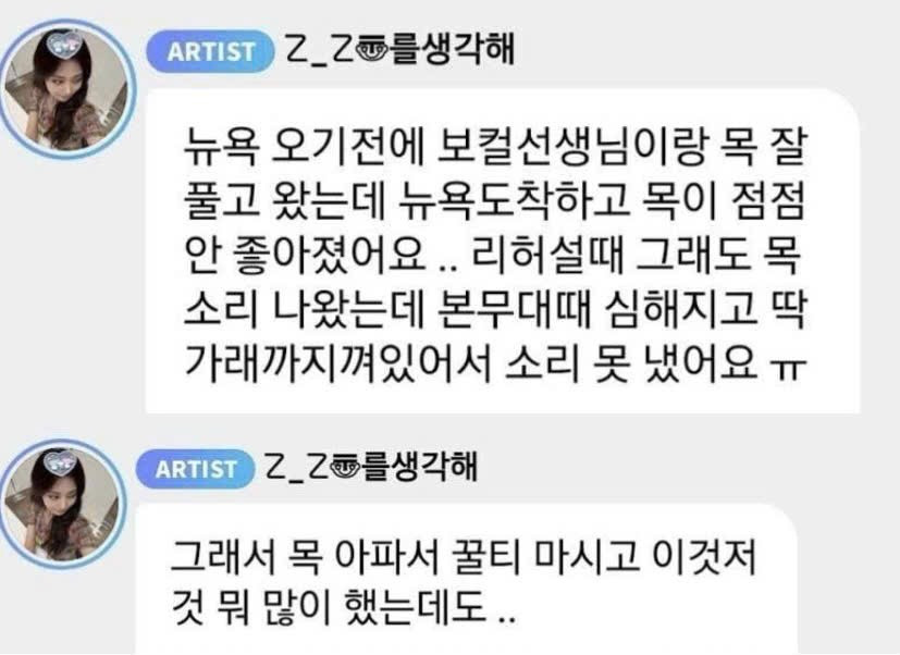 Trong khi Nayeon và Jihyo thể hiện tốt phần của mình, Momo được khen ngợi vì có tiến bộ, thì Tzuyu lại nhận về nhiều ý kiến trái chiều khi giọng hát bị đánh giá là yếu và hụt hơi. Sau khi sân khấu kết thúc, em út TWICE đã lên ứng dụng trò chuyện với người hâm mộ để chia sẻ và gửi lời xin lỗi. Cô giải thích rằng đã bị khàn giọng nặng trước buổi diễn dù đã luyện tập chăm chỉ và thử nhiều cách cải thiện nhưng không hiệu quả.