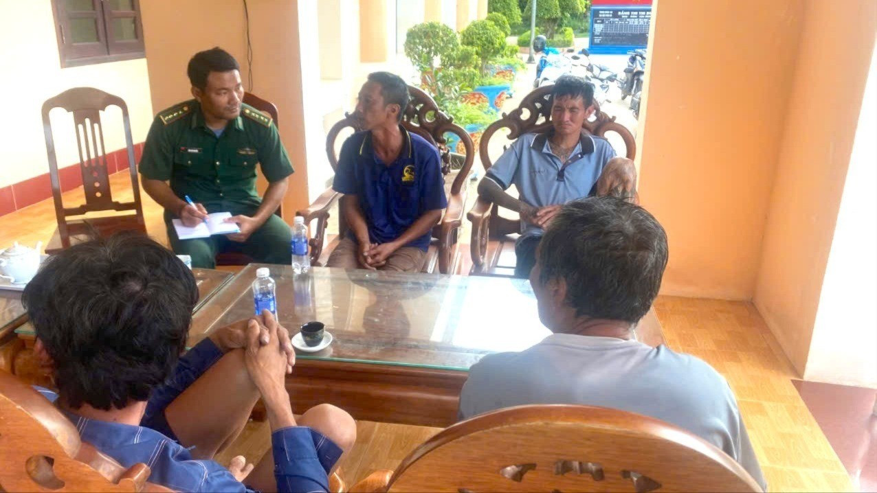 Chỉ huy đồn Biên phòng Thổ Châu thăm hỏi, động viên tinh thần 4 ngư dân. Ảnh: Tiến Vinh.