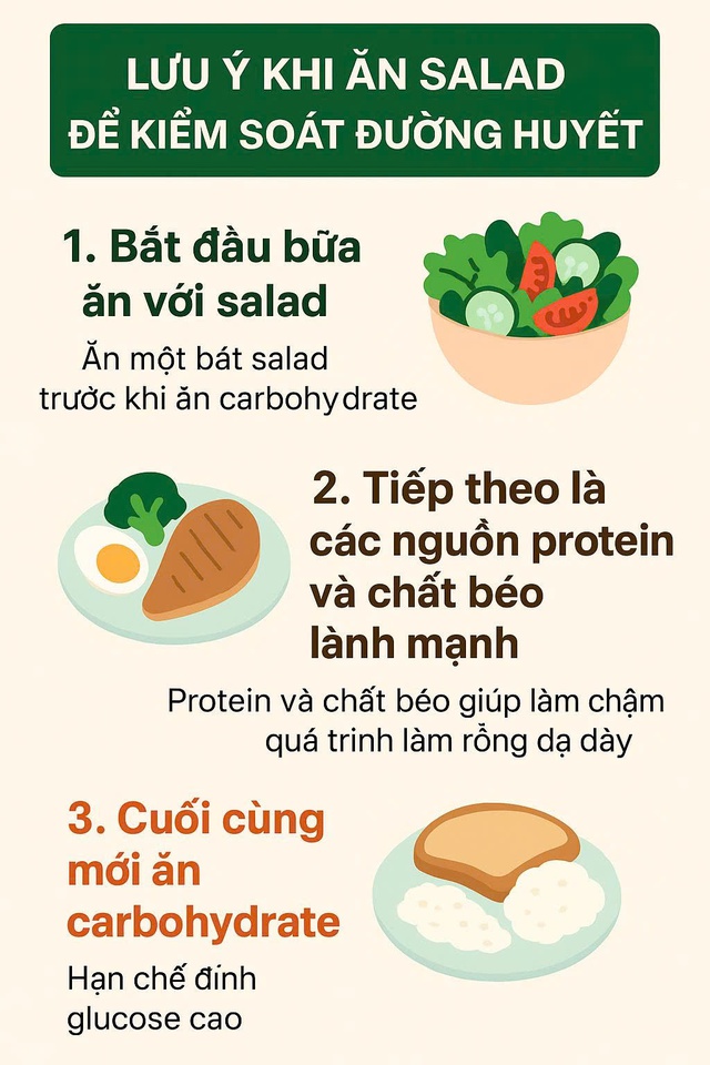 Đối với những người theo dõi đường huyết, đặc biệt là bệnh nhân tiểu đường, trình tự ăn salad đúng cách là một chiến lược thông minh.