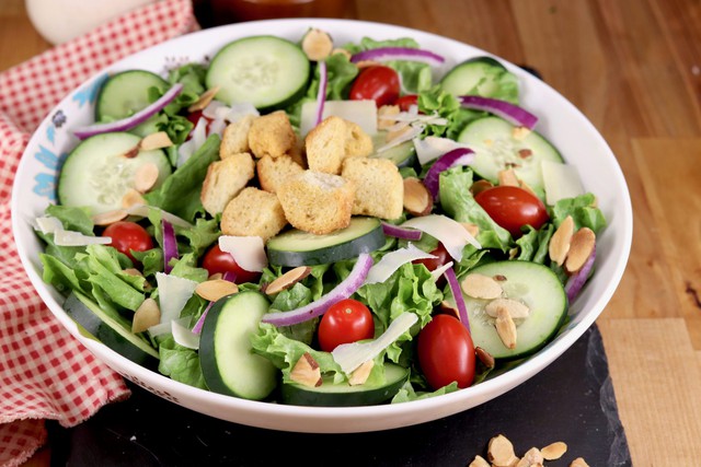 - Bắt đầu bữa ăn với salad: Salad sống giàu chất xơ (dưa chuột, cà chua, cà rốt, ớt chuông, rau lá xanh như rau bina hoặc rau diếp) giúp làm chậm hấp thu glucose từ carbohydrate, ngăn ngừa tăng đường huyết đột ngột.