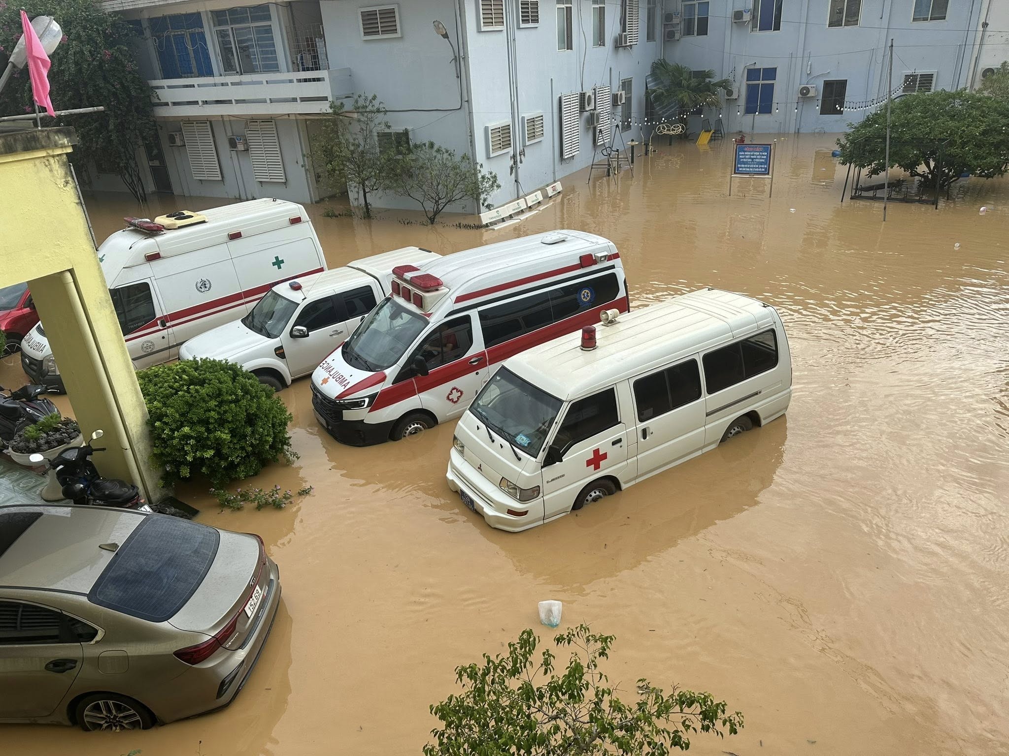 Trung tâm Y tế khu vực Hữu Lũng, tỉnh Lạng Sơn ngập gần hết tầng 1, khiến nhiều bệnh nhân và y bác sĩ bị cô lập. Ảnh: Nông Xuyến.